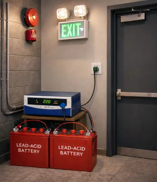 - Emergency lighting & safety systems: Provides stored energy to emergency lights, alarms, and exit signs in commercial buildings.